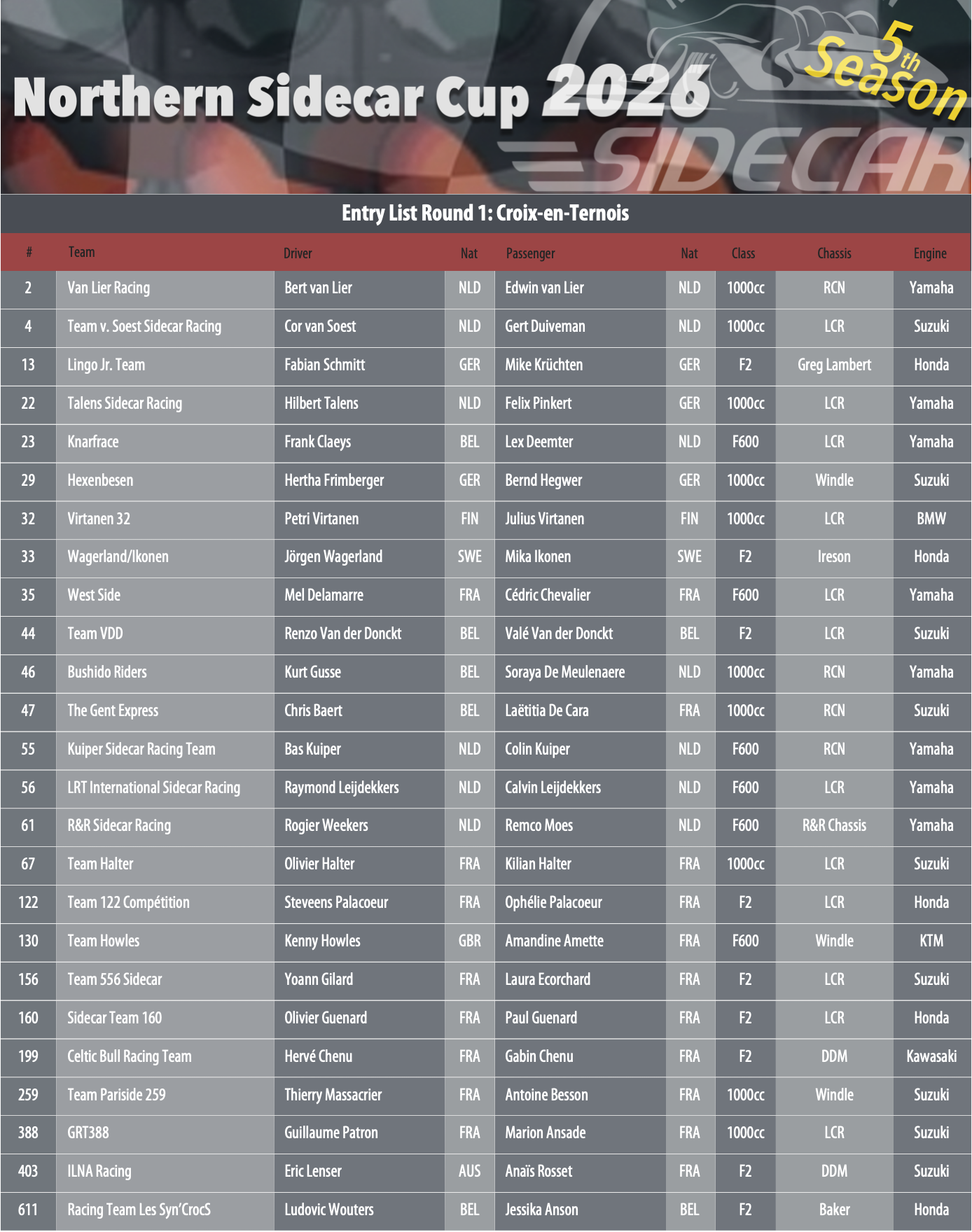 Rankings, entry lists and results 2026 Round 1: April 18 & 19, Croix-en-Ternois (France) Entry list Results Round 2: May 2 & 3, Hengelo (Netherlands) Entry list Results Livestream Round 2 Qualies and Races (edited) Q1 & Q2 R1 & R2 Round 3: May 23 & 24, Nürburgring (Germany) Entry list Results Round 4: July 4 & 5, Brands Hatch (UK) Entry list Results Round 5: July 25 & 26, Chimay (Belgium) Entry list Results Round 6: August 7, 8 & 9, Mettet (Belgium) Entry list Results Round 7: October 2, 3 & 4, Oschersleben (Germany) Entry list Results 2025 Round 1: April 19 & 20, Croix-en-Ternois (France) Entry list Results Round 2: May 17 & 18, Hengelo (Netherlands) Entry list Results Livestream Round 2 Qualies and Races (edited) Q1 & Q2 R1 & R2 Round 3: May 23, 24 & 25, Assen (Netherlands) Entry list Results Round 4: July 26 & 27, Chimay (Belgium) Entry list Results Round 5: August 29, 30 & 31, Carole (France) Entry list Results Round 6: September 27 & 28, Brands Hatch (UK) Entry list Results Round 7: October 3, 4 & 5, Oschersleben (Germany) Entry list Results Final Ranking Download Download Download 2024 Round 1: April 13 & 14, Croix-en-Ternois (France) Entry list Results Round 2: May 12 & 11, Hengelo (Netherlands) Entry list Results Round 3: May 24, 25 & 26, Assen (Netherlands) Entry list Results Round 4: June 28, 29 & 30, Oschersleben (Germany) Entry list Results Round 5: July 27 & 28, Chimay (Belgium) Entry list Results Round 6: October 4, 5 & 6, Oschersleben (Germany) Entry list Results Final Ranking Download Download Download 2023 Round 1: April 8 & 9, Croix-en-Ternois (France) Entry list Results Round 2: May 6 & 7, Hengelo (Netherlands) Entry list Results Round 3: May 19, 20 & 21, Assen (Netherlands) Entry list Results Round 4: June 10 & 11, Nürburgring (Germany) Entry list Results Round 5: July 22 & 23, Chimay (Belgium) Entry list Results BK & ONK: September 23 & 24, Croix-en-Ternois (France) Entry list Results Final Ranking Download Download 2022 Round 1: April 16 & 17, Croix-en-Ternois (France) Entry list Results Round 2: April 30 & May 1, Hengelo (Netherlands) Entry list Results Round 3: May 27, 28 & 29, Assen (Netherlands) Entry list Results Round 4: July 23 & 24, Chimay (Belgium) Entry list Results Final Ranking Download Download